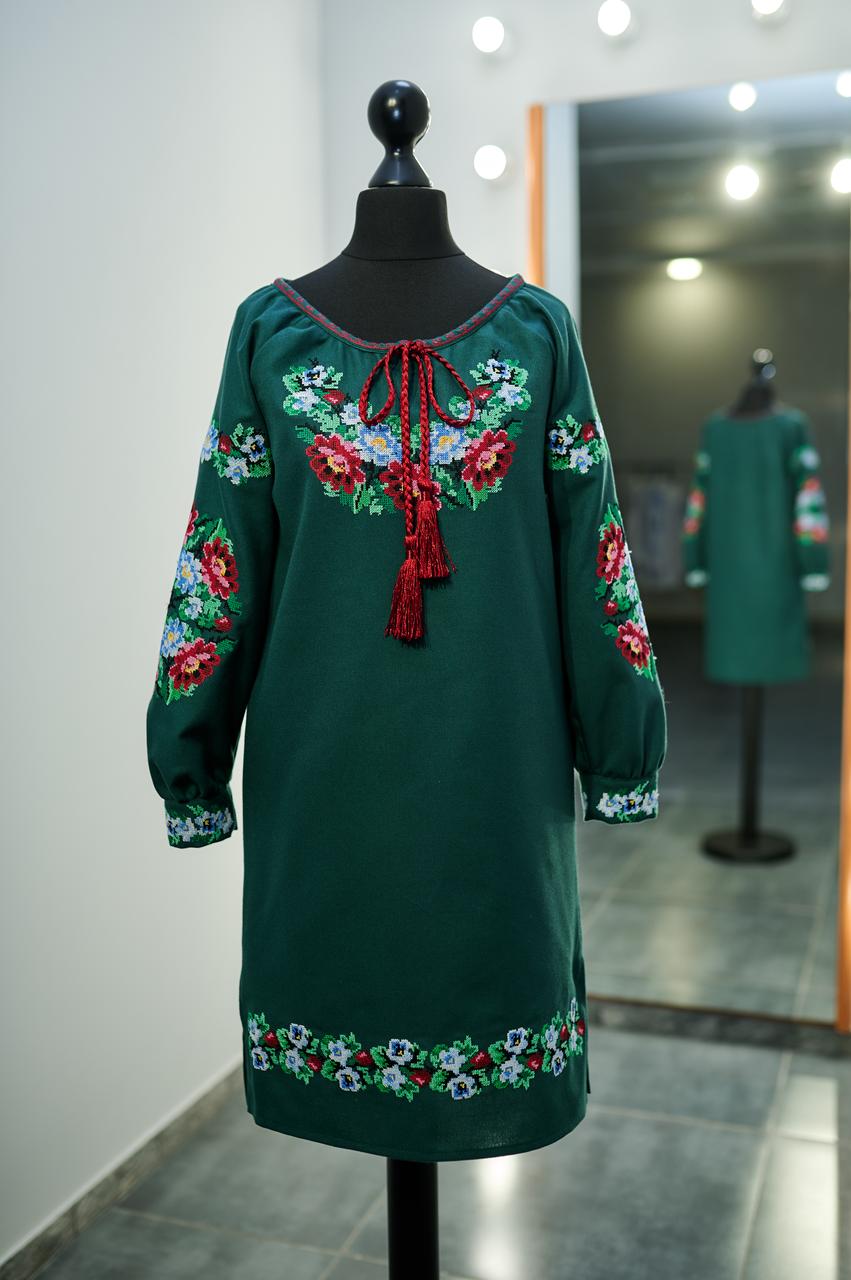 Вишиванка для дівчинки довгий рукав колір зелений вишивка хрестик